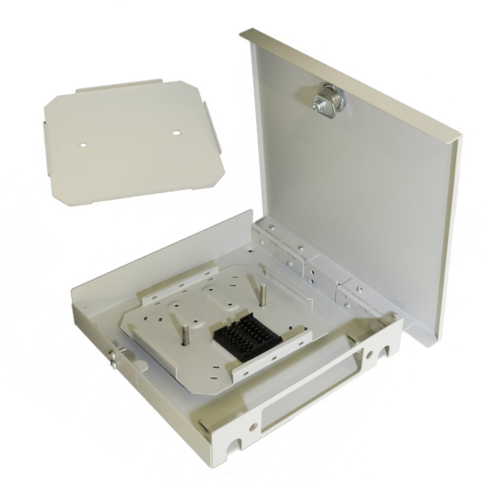 Hyperline FO-WBY-8UN-MI Бокс оптический универсальный, настенный на 8 портов (SC, duplex LC, ST, FC) с держателем для 8 КДЗС, фиксатором центрального силового элемента, зажимом для организации кабеля, стяжками (без пигтейлов и проходных адаптеров).