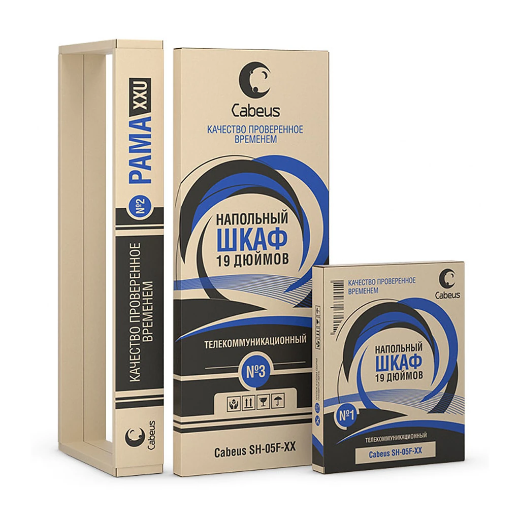 - В комплект поставки шкафа Cabeus входит: передняя дверь с замками; задняя дверь с замками; 2 боковые съемные панели; 2 пары 19" монтажных профилей имеют Юнитовую (U) разметку; регулируемые и роликовые опоры; крепежный комплект 30шт. (винт+квадратная гайка).