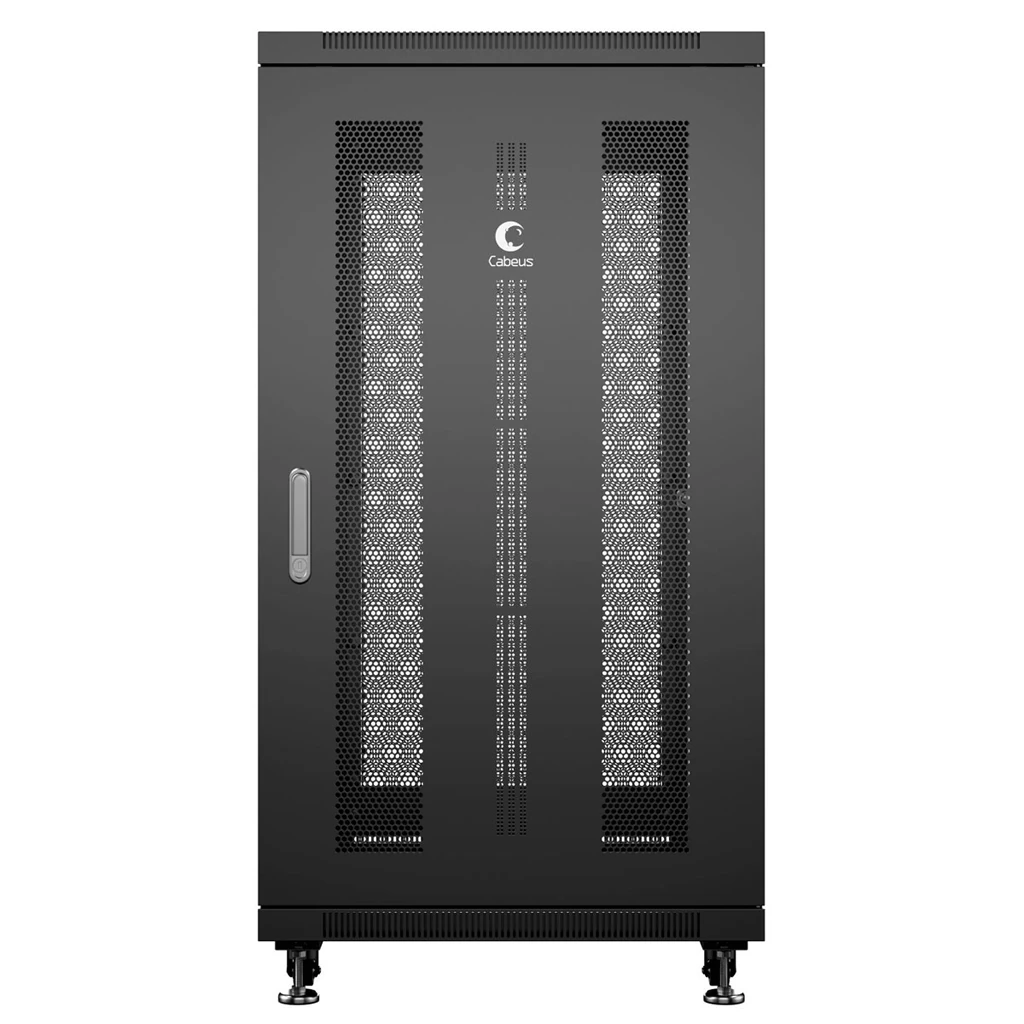 Шкаф телекоммуникационный 19" Cabeus ND-05C-22U60/60-BK — напольное решение для размещения распределительного и серверного оборудования стандартов 19" и 22U. Конструкция на основе двух сварных рам обеспечивает высокую жесткость и надежную фиксацию оборудования, а габариты 600x600x1166 мм (ШхГхВ) позволяют использовать шкаф в серверных, небольших узлах связи и шкафных решениях на объекте. Передняя и задняя металлические перфорированные двери способствуют эффективной естественной вентиляции, сохраняя при этом необходимый уровень физической защиты установленной техники.