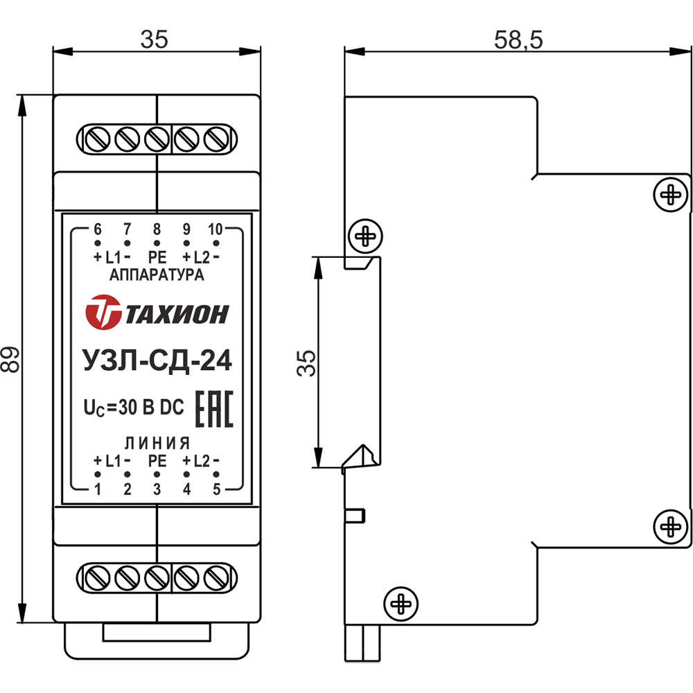 Конструктивно выполнено в пластмассовом корпусе с креплением на 35мм DIN-рейку.
