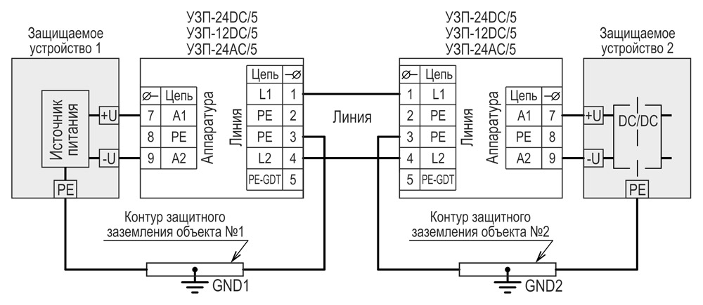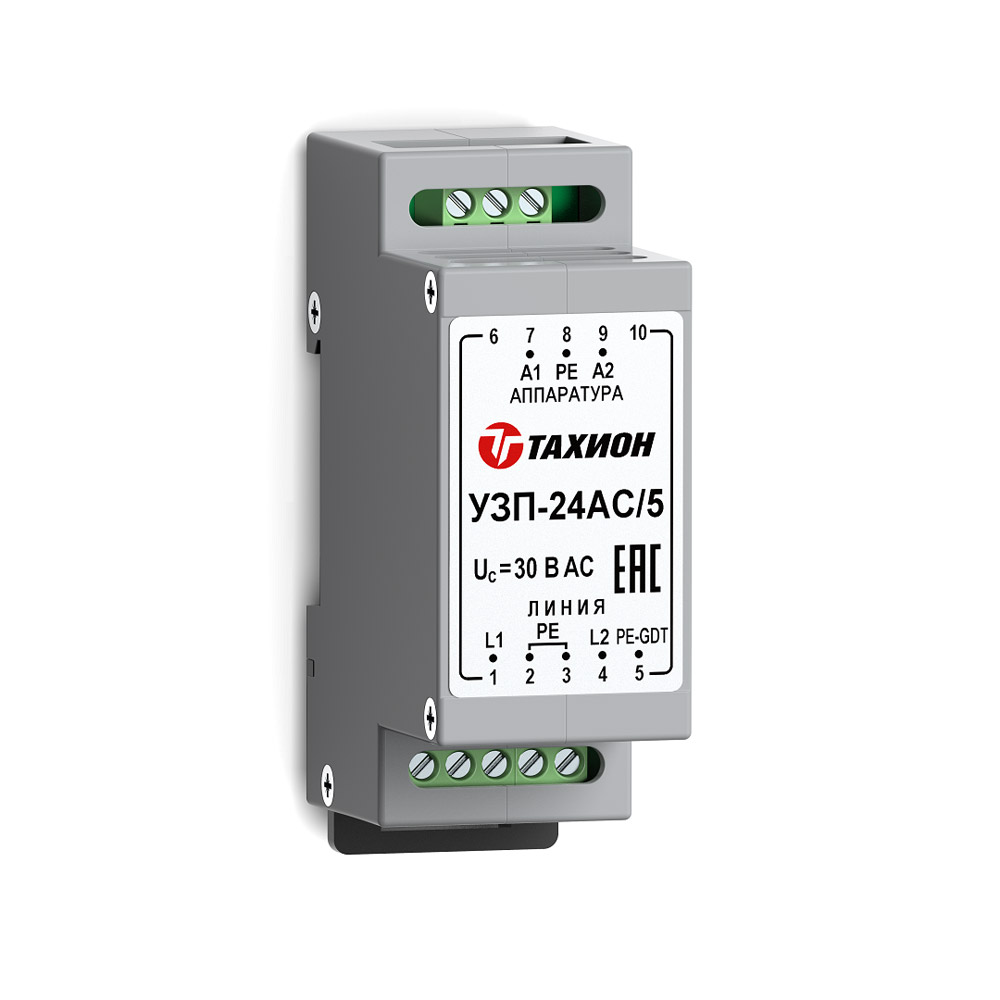 Устройство защиты УЗП-24AC/5 предназначено для защиты цепей вторичных источников электропитания распределительных сетей аппаратуры промышленной автоматизации, систем сигнализации и прочих питаемых устройств от импульсных перенапряжений (грозовых, электростатических разрядов и др.).