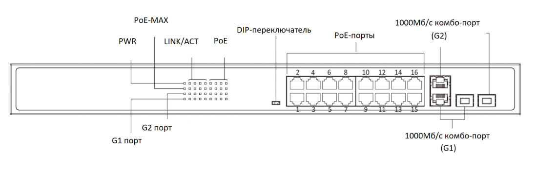 • LED Индикаторы: Link/ Act, PoE, Питание