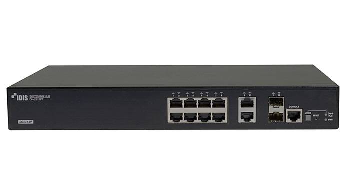 Коммутатор IDIS DH-2212PF с поддержкой PoE, второго уровня (L2), предназначен для соединения нескольких устройств системы IP-видеонаблюдения или нескольких сегментов сети. Коммутатор уровня 2 обрабатывает и регистрирует МАС–адреса поступающих фреймов, осуществляет физическую адресацию и управления потоком данных (VLAN, мультикаст фильтрация, QoS). Наличие двух Гигабитных медных и двух оптических портов uplink, позволяет осуществить каскадное соединение нескольких коммутаторов.