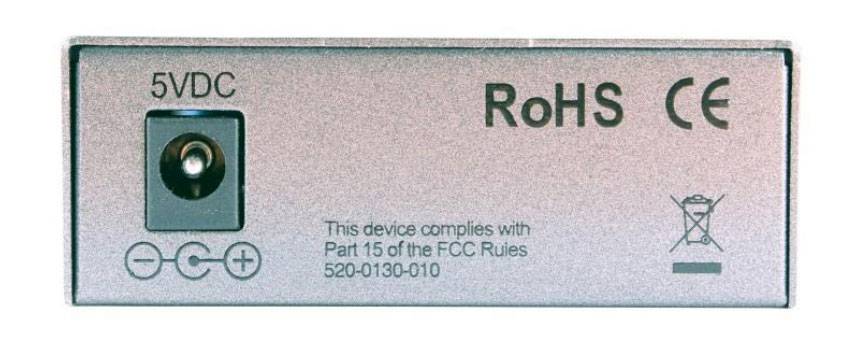 Автоопределение MDI/MDI-X. Вх. - Роз.2,1х5мм(DC5V), Вх./вых. - RJ45(Ethernet)/SC(tx1310/rx1550нм). В комплекте: БП DC5V(1A).