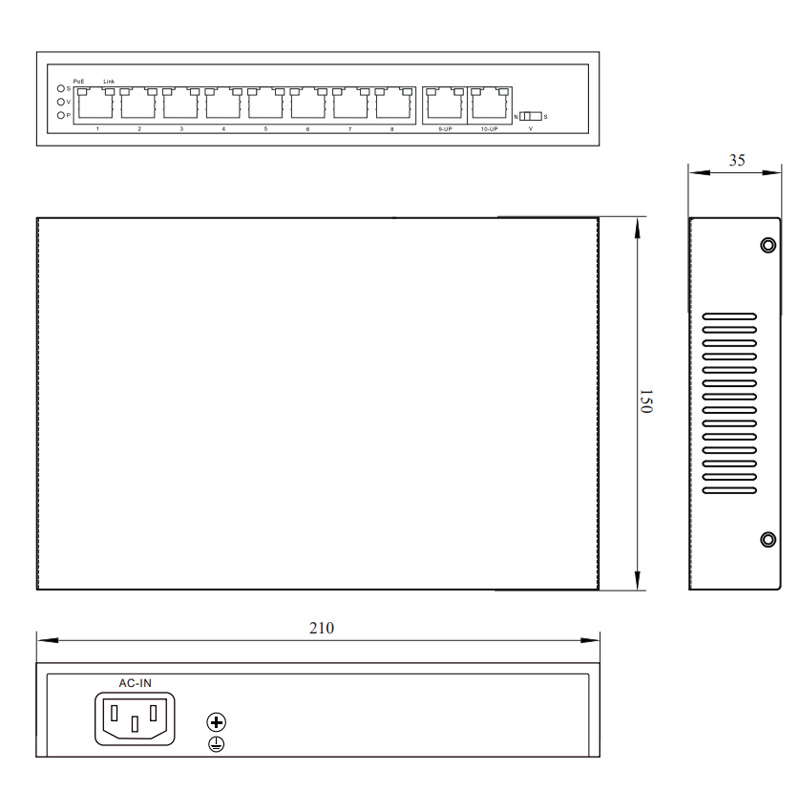 Поддержка технологии PoE по стандартам 802.3af/802.3at для портов 2–8 и расширенного стандарта 802.3bt для порта 1 позволяет питать устройства мощностью до 30 Вт на обычных портах и до 90 Вт на усиленном порту. Функция PoE Watchdog автоматически перезапускает зависшие камеры, обеспечивая бесперебойный мониторинг, а встроенная защита от перенапряжения ±6 кВ и предохранитель 3 А гарантируют устойчивую и безопасную работу в сложных условиях. Компактные габариты 210×150×35 мм, вес 0,8 кг и диапазон рабочих температур от –10 °C до +55 °C позволяют устанавливать коммутатор в ограниченных пространствах и в самых разных климатических зонах.