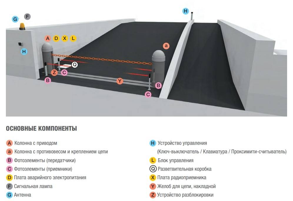• Специальный желоб гарантирует надежную защиту цепи при открытом проезде.