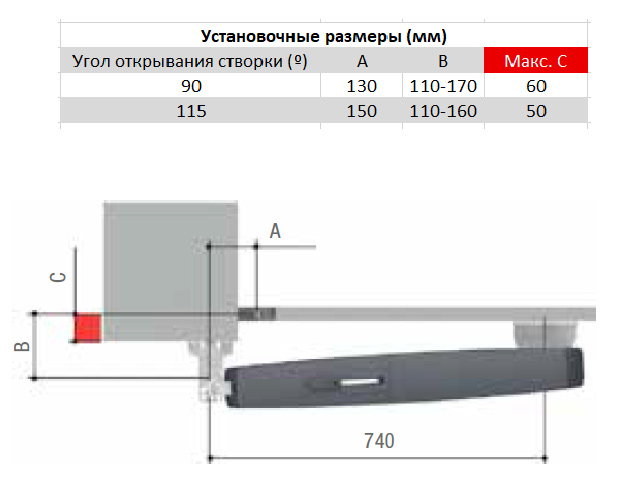 Самоблокирующийся привод с энкодером для створок шириной до 2,2 м.