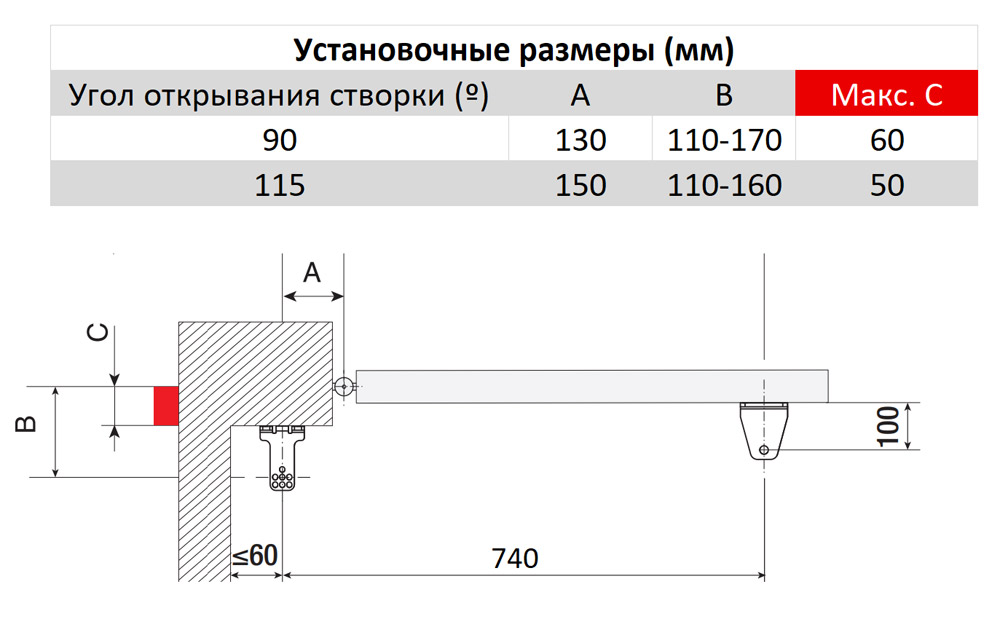 * Ориентировочное минимальное значение при максимальной скорости движения и минимальной скорости замедления. Масса и тип створки, состояние износа ворот и географическая зона могут существенно повлиять на это значение.