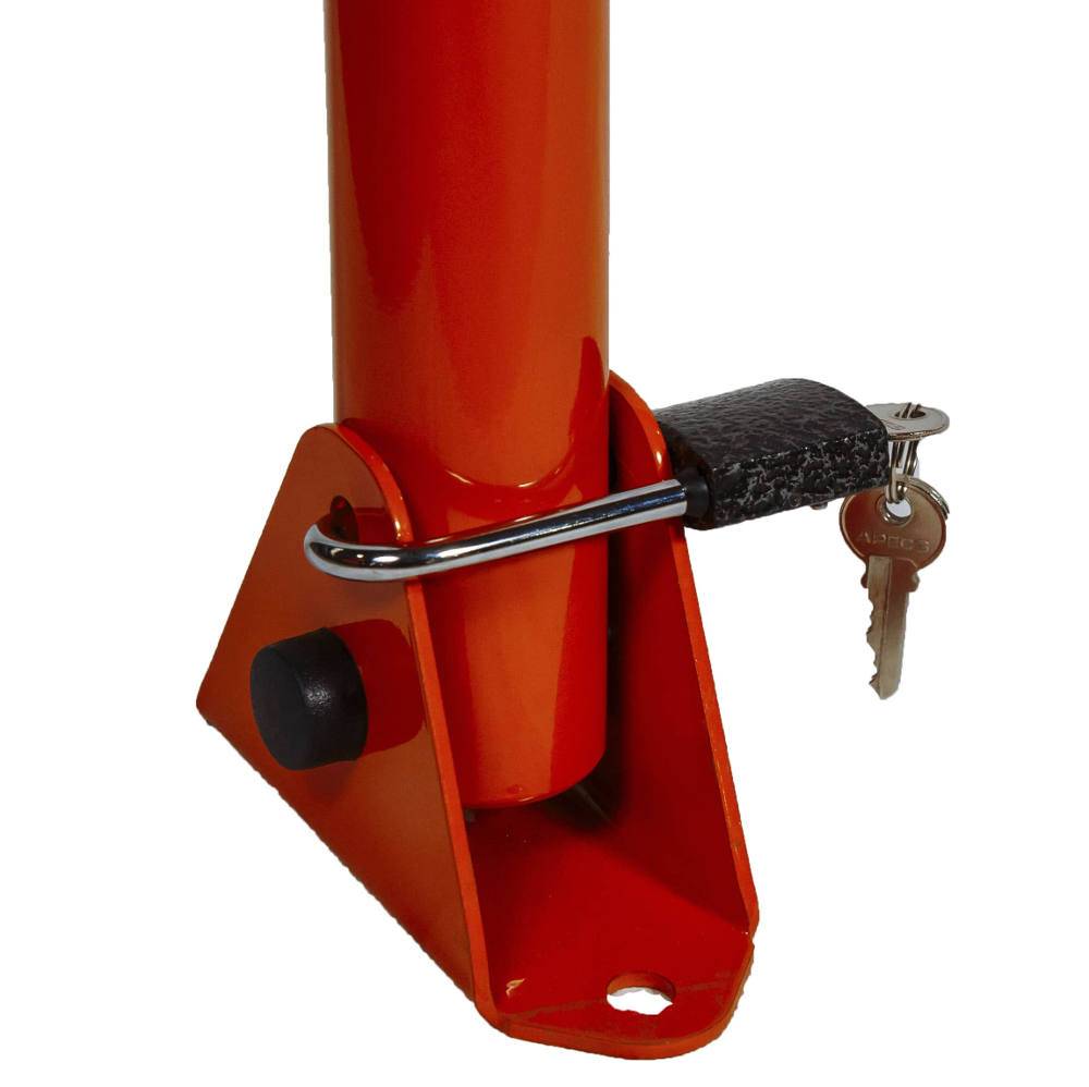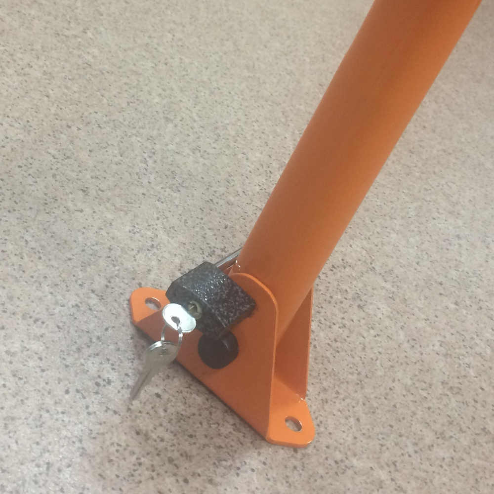 Парковочные барьеры с навесным замком представляют собой достаточно простое и одновременно надежное устройство. В сложенном виде барьер дает возможность для свободного движения автомобиля, а при раскладывании и фиксации с помощью замка полностью исключает движение или парковку транспорта.