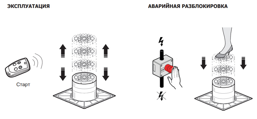 Прочный и функциональный в использовании боллард с электромеханическим двигателем питается от напряжения 230 Вольт. Интенсивность использования до 500 рабочих циклов за 24 часа.