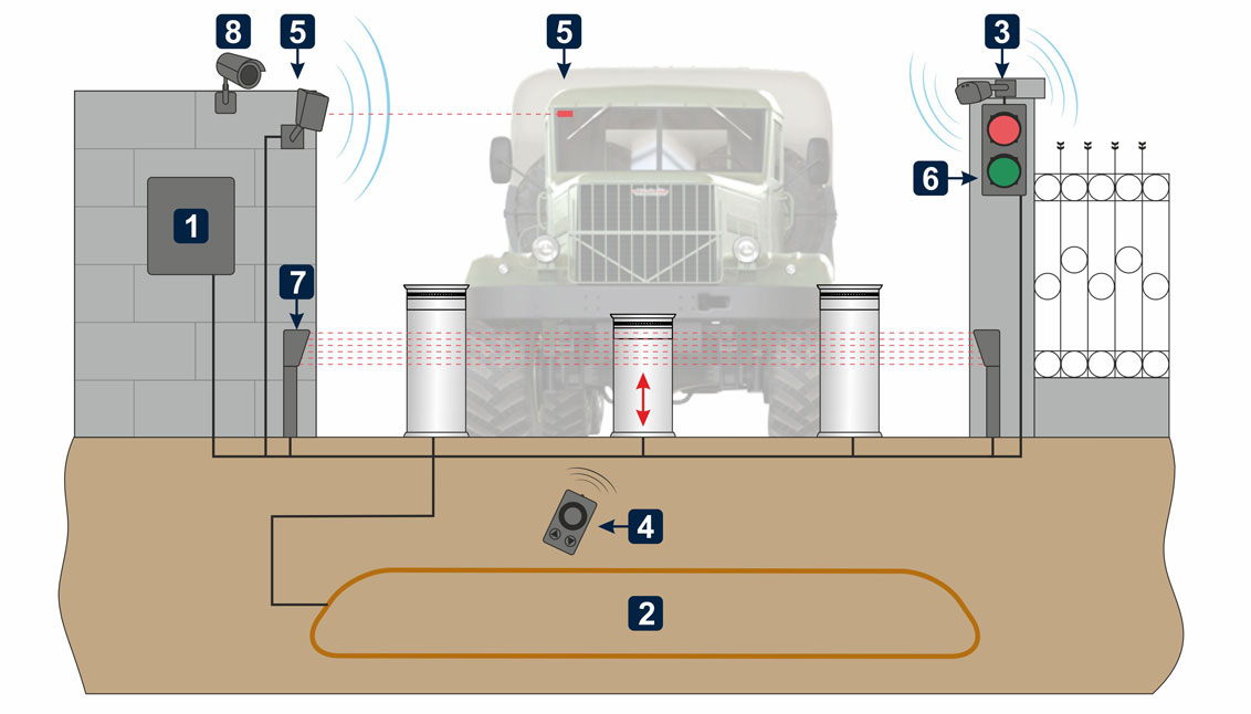 1. Контроллер управляет боллардами (до 4-х шт) на основе сигналов с пультов и датчиков. Аналоговый блок входит в стандартную комплектацию, цифровой заказывается дополнительно.2. Индукционные петли обнаруживают наличие транспорта непосредственно перед столбами безопасности, ориентируясь на массу металла объекта. Магнитные контуры монтируются в дорожное покрытие с двух сторон от боллардов. Дополнительно исключают поднятие столбов в момент пересечения заградительных устройств.