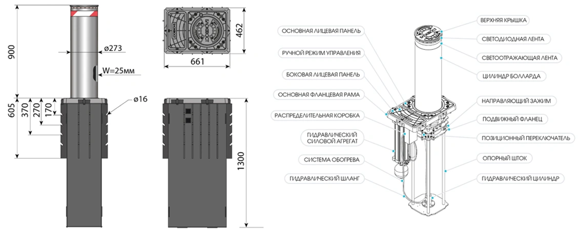 - Функция EFO для быстрого подъема болларда в аварийных ситуациях.
