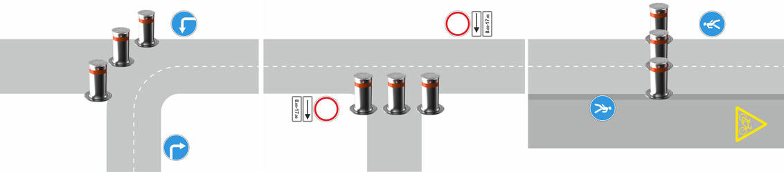 Система управления имеет степень защиты IP55 и поддерживает управление как по проводным, так и по беспроводным каналам. Блок управления позволяет подключать до 18 боллардов, обеспечивая централизованный контроль. Механизм болларда рассчитан на не менее чем 300 000 циклов, что делает данное решение оптимальным для объектов с высокой интенсивностью проезда — контрольно-пропускных пунктов, промышленных территорий, транспортных терминалов и военных объектов.