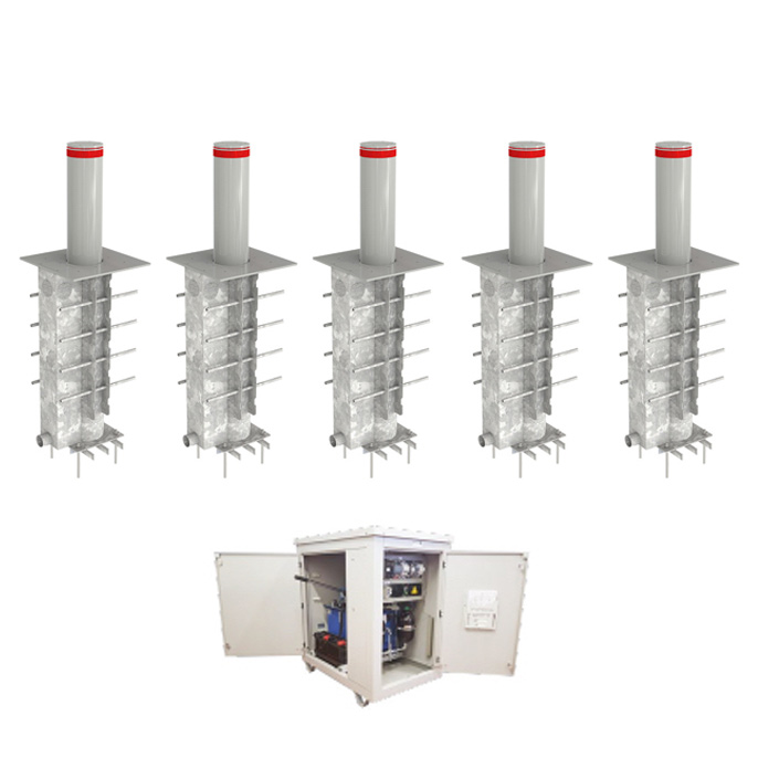 Стандартная сеть 380 В перем. тока, 3 ф., 50/60 Гц, двигатель мощностью 1,1-11 кВт (в зависимости от количества боллардов в комплекте и включенных принадлежностей). Опционально предусмотрена работа с напряжением 24 В пост. тока в случае сбоя сетевого питания.