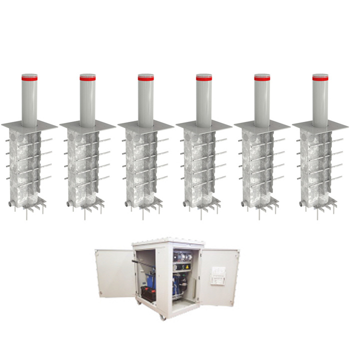 6 боллардов, шкаф управления с рукавом высокого давления 10 метров и межблочным рукавом 1,2 метра, датчик уровня масла, ручной аварийный насос и кнопочная станция (HPU-EBTN).