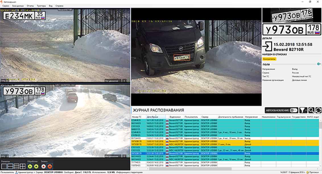 • Автоматический поиск распознанных номеров автомобилей в базах данных пользователя и при совпадении автоматическое реагирование по заданному пользователем сценарию.