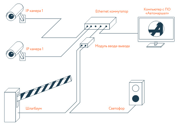 ПО «Автомаршал» устанавливается на компьютер с операционной системой семейства Windows. К компьютеру по сети Ethernet подключается до восьми IP-видеокамер.