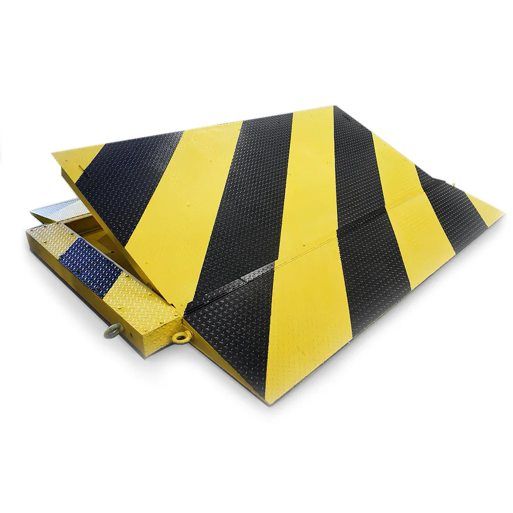 Высота поднятого края платформы составляет 500–550 мм при угле подъема 20–22°, что гарантирует эффективное перекрытие проезда. Электромеханический привод с центральным расположением обеспечивает плавное и точное движение платформы со скоростью подъема и опускания 3–6 секунд. Встроенный процессорный блок управления контролирует работу устройства, а при отключении электропитания барьер остается в поднятом положении, сохраняя охранную функцию. Светодиодная подсветка и сигнальная окраска желто-черного цвета обеспечивают визуальную видимость и безопасность эксплуатации в любое время суток. Устройство отличается высокой ремонтопригодностью и простотой обслуживания.