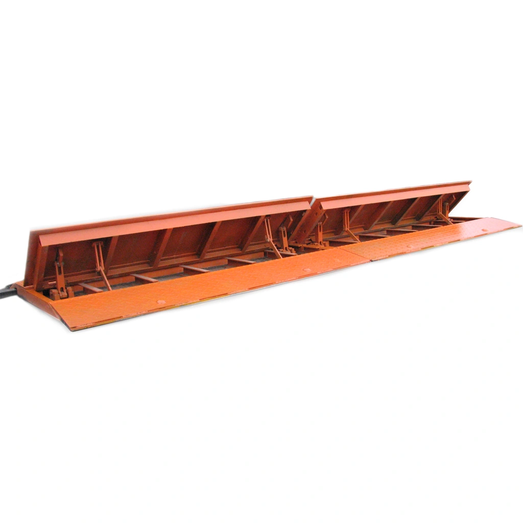 Поворотная заградительная платформа поднимается на рабочую высоту за ≤3 секунды благодаря гидроприводу с давлением 6–7 МПа. Рамы выполнены из стального проката с рифлёным листом, поворотная часть шарнирно связана с гидроцилиндром. При подъёме платформа фиксируется запиранием масла в подводящей линии, при подаче давления в обратную линию опускается в исходное положение. В опущенном положении пандусы обеспечивают безопасное движение, не требуя изменения уровня дороги.
