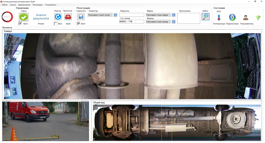- Фото и видеофиксация днища транспортного средства с отображением результатов контроля на автоматизированном рабочем месте для детального анализа
