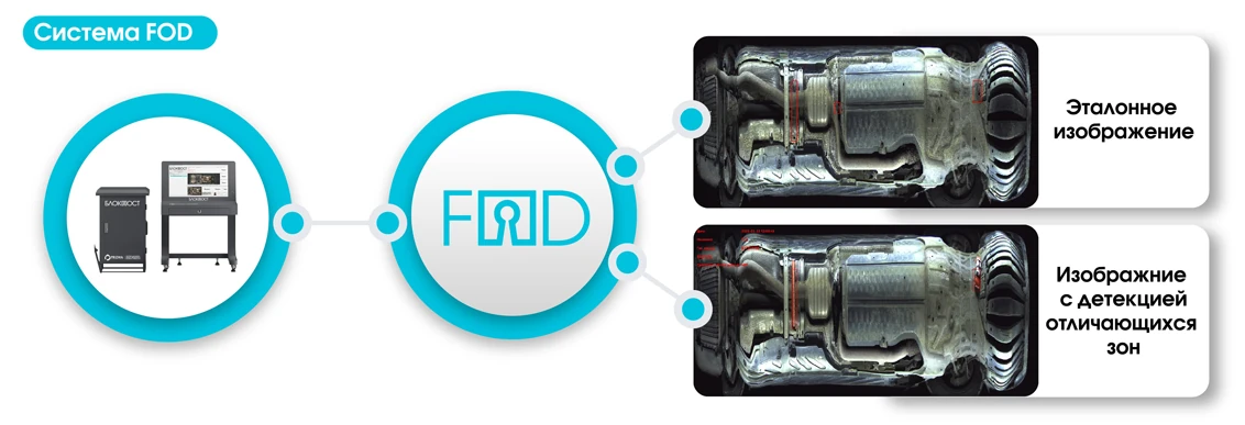 FOD – система помощи оператору в определении посторонних предметов на днище автомобиля путём сравнения с эталонным снимком. FOD является уникальной в своём роде, высокотехнологичной разработкой.