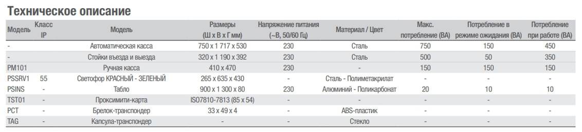 Стойки въезда/выезда используют микропроцессорную технологию с архитектурой ARM, способную управлять всеми устройствами парковочной системы PS One. Передача данных на центральный сервер осуществляется посредством локальной сети и стека протоколов TCP/IP. Каждое событие отслеживается в режиме реального времени и отправляется на центральный сервер. Конструкция изготовлена из оцинкованной и окрашенной стали.