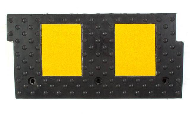 Бордюрный съезд, выполненный из черной резины, оснащен светоотражающими элементами из пленки высшего класса и имеет противоскользящую поверхность, что является его дополнительным преимуществом, учитывая климатические особенности, в которых он будет эксплуатироваться.