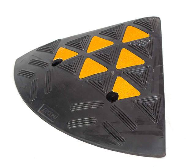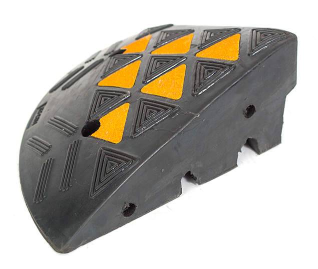 Бордюрный съезд, выполненный из черной резины, оснащен светоотражающими элементами из пленки высшего класса и имеет противоскользящую поверхность, что является его дополнительным преимуществом, учитывая климатические особенности, в которых он будет эксплуатироваться.
