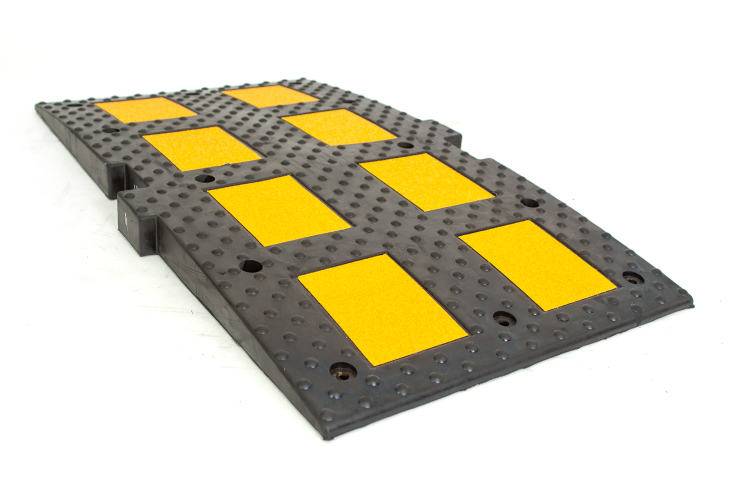 • Боковые выступы (замок типа шип-паз) на элементах искусственной дорожной неровности прочно сдерживают все части конструкции, обеспечивая крепкое и надежное соединение.