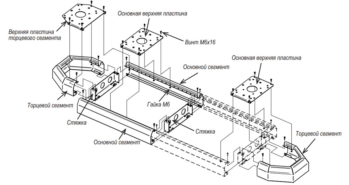 2. Соберите островок безопасности в соответствии с рисунком. Верхние пластины устанавливаются при необходимости монтажа на них паркингового оборудования.