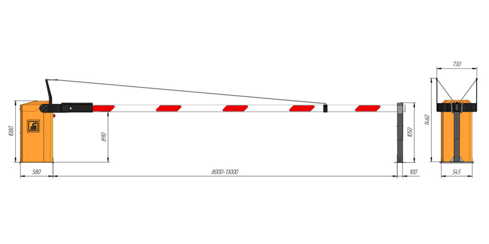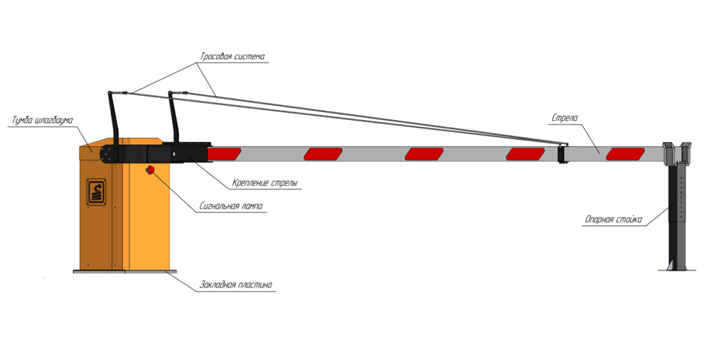 Шлагбаумы Титан предназначены для регулирования движения транспорта на сверх широких проездах: от 12 до 13 метров.