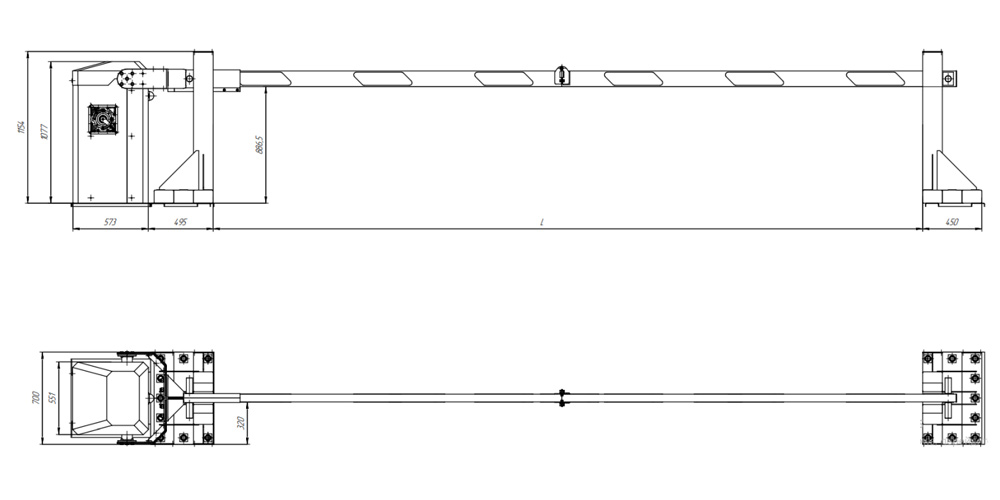 Стрела выполнена из стальной профильной трубы 120х60 мм с тросом внутри и со светоотражателями длиной 6,5 м.