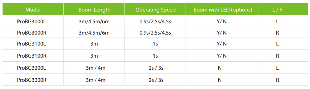 Шлагбаумы серии ProBG3130 со стрелой под углом 90º являются идеальным решением для систем парковки и контроля безопасности. Большой срок службы, надежность, интенсивность и качество. Автоматика и привод шлагбаума сервомотор. Кроме того, благодаря инновационной конструкции, шлагбаум имеет компактные размеры, низкий уровень шума, водо- и пыленепроницаемость. Плавный и равномерный подъем и опускание стрелы значительно увеличивает срок службы изделия.