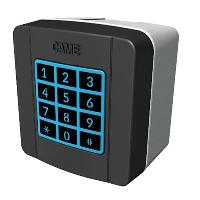 Цифровое управление автоматическими системами. Беспроводная, накладная кодонаборная клавиатура, 12 кнопок, синяя подвеска, возможность запоминания 25 кодов, может работать в режиме динамического или статического кода (цвет серый, RAL7024).