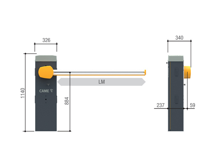 Автоматический шлагбаум с самоблокирующимся приводом =24 В с энкодером; тумба из оцинкованной и окрашенной стали с возможностью установки аксессуаров. Балансировочная пружина входит в комплект.