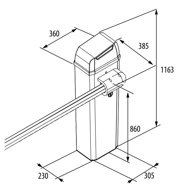 • Тумба шлагбаума с мотор-редуктором, системой привода и платой управления
