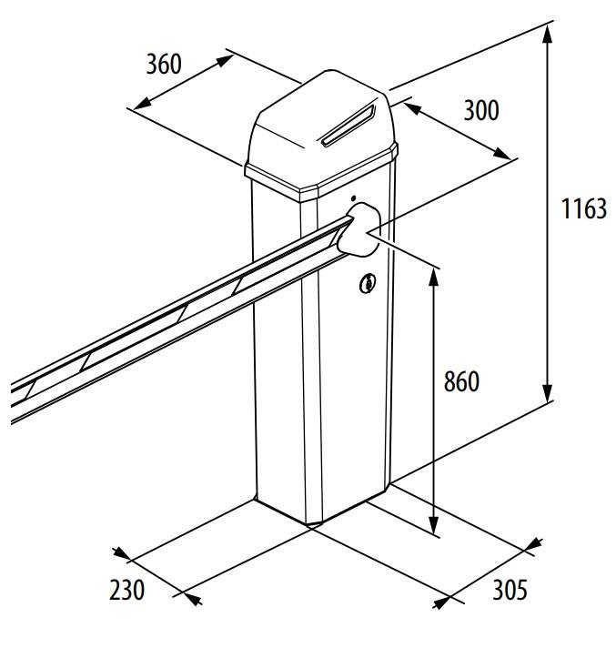 B614 - электромеханический шлагбаум, оснащенный электронной платой Е614. B614 должен быть установлен на специальной фундаментной плите и располагаться
