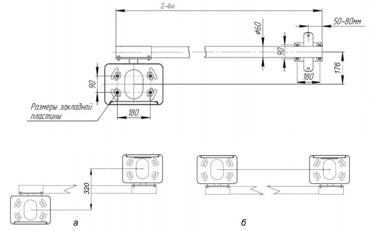 При необходимости перекрытия проезда слева, или при установке двух шлагбаумов в линию возможны два варианта:
