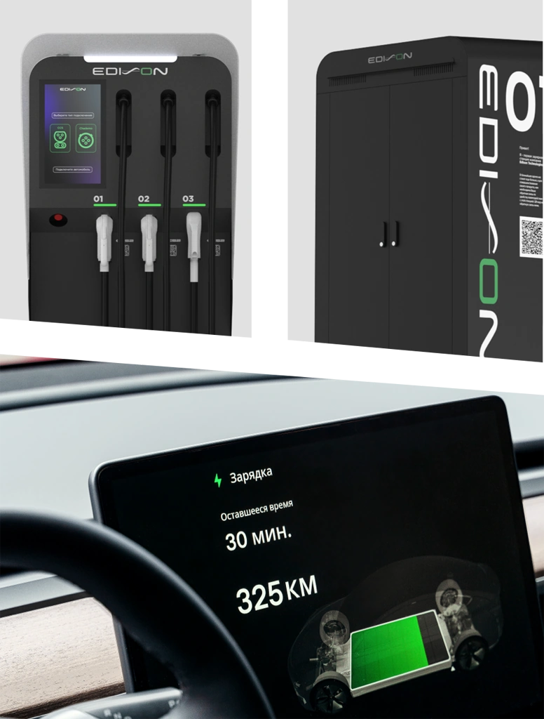 Зарядная станция Edison DC 150 — это мощное решение постоянного тока, предназначенное для обслуживания больших потоков электромобилей. Станция обеспечивает до 150 кВт выходной мощности и идеально подходит для установки в зарядных хабах, таксопарках, на парковках бизнес-центров, аэропортов и других коммерческих объектов с высокой проходимостью. Корпус станции выполнен из прочных материалов, устойчивых к механическим повреждениям и погодным условиям, включая морозы, жару, осадки и пыль.