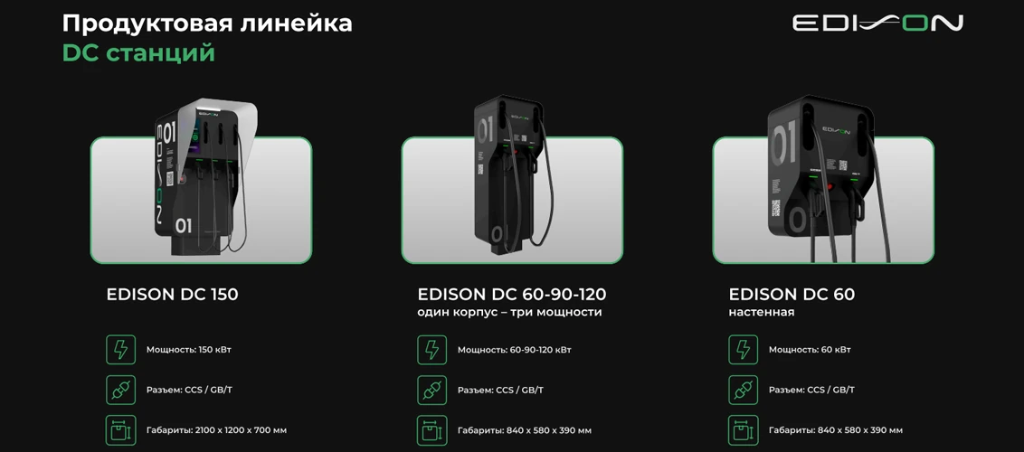 Модель DC 150 поддерживает трёхфазное подключение, оснащена коннекторами GB/T и CCS и совместима с современными электромобилями. Встроенные интеллектуальные системы защиты предотвращают скачки напряжения, перегрузки и перегрев, а также обеспечивают безопасную эксплуатацию при высокой нагрузке. Дополнительно есть возможность интеграции видеомониторинга, что делает станцию особенно привлекательной для коммерческого использования.
