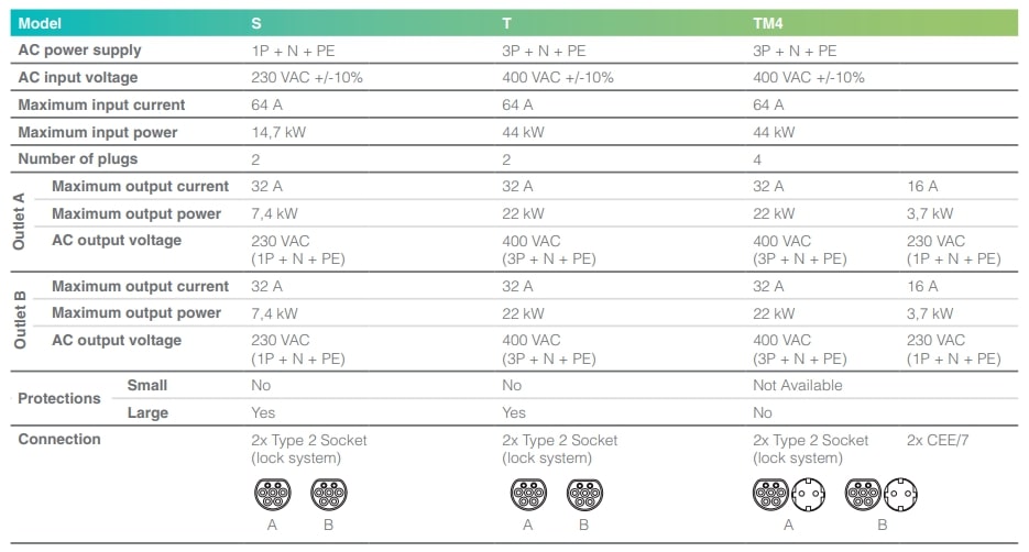 • Режим ограничения мощности: Mode 3 PWM в соответствии с ISO/IEC 61851-1