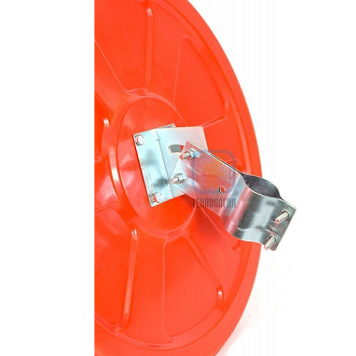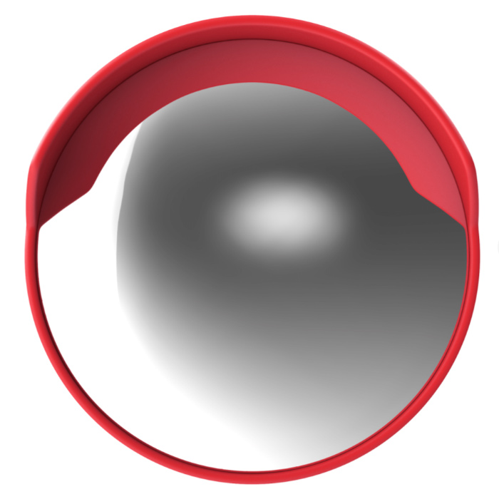 Основа зеркала выполнена из ABS пластика оранжевого цвета. В верхней части предусмотрен козырек для защиты от солнца и осадков.