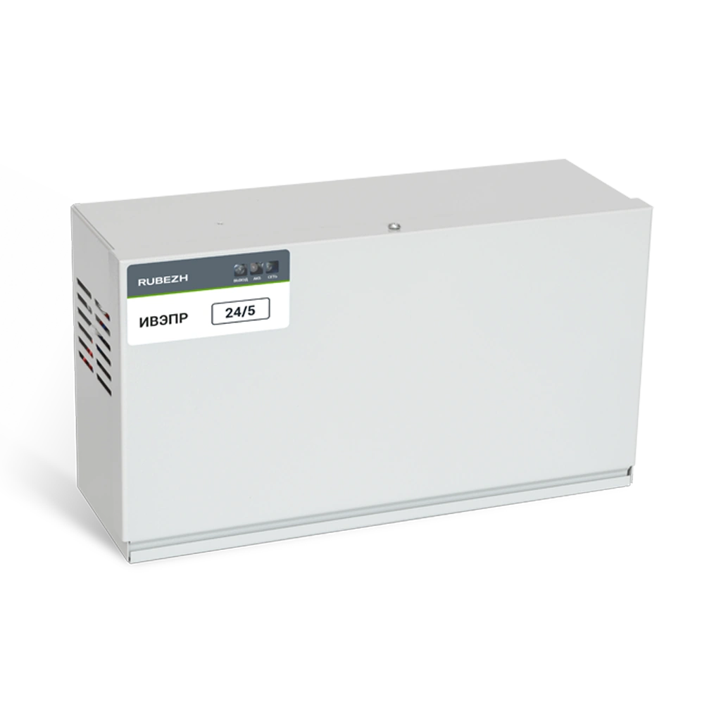 ИВЭПР 24/5 2×12-Р БР — резервированный источник вторичного электропитания на 24 В для систем охранно-пожарной сигнализации, оповещения и смежных инженерных подсистем. Модель обеспечивает непрерывное питание нагрузки от сети и автоматический переход на резерв от двух последовательно соединённых АКБ 12 В (2×12 А·ч). На передней панели — индикация «СЕТЬ», «ВЫХОД», «АКБ», для диспетчеризации предусмотрен «сухой контакт» реле «Авария».