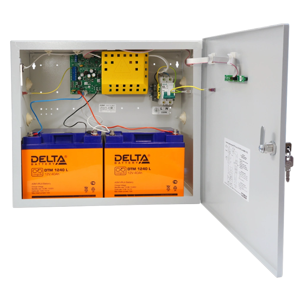 Конструкция источника питания рассчитана на работу с двумя герметичными свинцово-кислотными аккумуляторными батареями серии «Болид» ёмкостью 26 или 40 А·ч. Прибор обеспечивает измерение сетевого и выходного напряжения, тока нагрузки, а также напряжения и состояния батарей. Все параметры и сообщения о текущем состоянии могут передаваться на пульт «С2000М» или в АРМ «Орион Про». Встроенные средства защиты предотвращают повреждения оборудования при перегрузках и коротких замыканиях, обеспечивая стабильность работы и высокую надёжность.