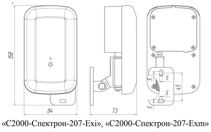 - Габариты, мм: - «С2000-Спектрон-207-Exi», «С2000-Спектрон-207-Exm»: не более 158х84х73