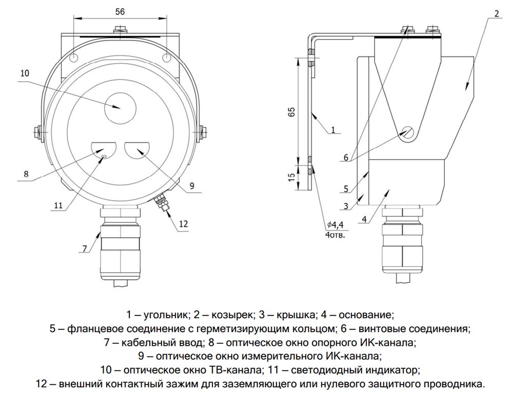Корпус изделия изготовлен из алюминия и имеет степень защиты IP66, обеспечивая высокую устойчивость к воздействию пыли, влаги и агрессивных факторов окружающей среды. Габариты устройства составляют 105×102×150 мм, масса — не более 1,2 кг. Диапазон рабочих температур варьируется от -55 до +55 °C (при включённом подогреве), что делает устройство пригодным для эксплуатации в суровых климатических условиях.
