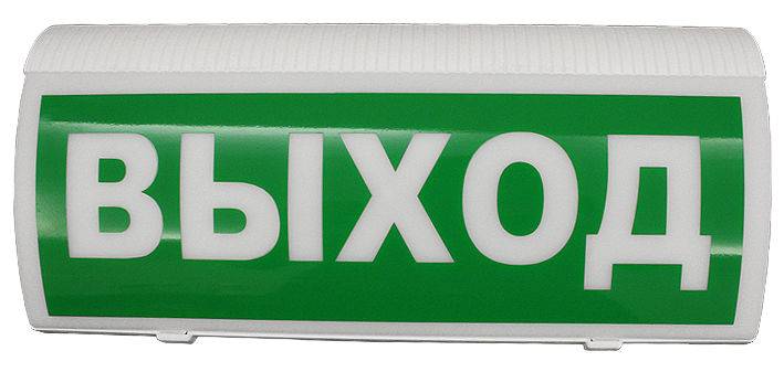 При пожаре оповещатель подсвечивает табло с надписью «ВЫХОД» мигающим белым светом, информируя окружающих о произошедшем возгорании и необходимости покинуть помещение.