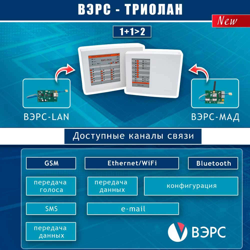 - Предустановленный модуль связи ВЭРС-ТРИОЛАН для эффективного двустороннего обмена информацией.