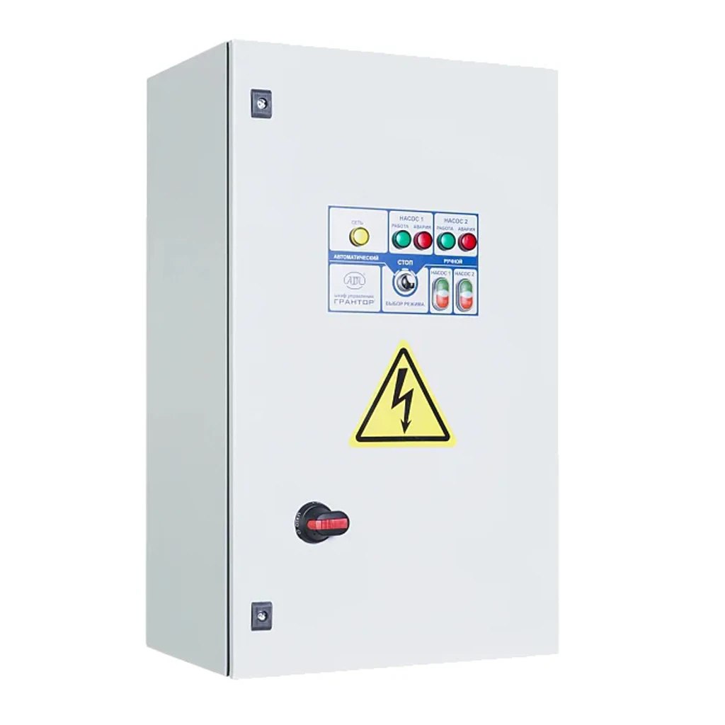 Шкафы управления ГРАНТОР® серии с питанием 3×380 В, прямым пуском, двумя насосами и двумя вводами питания с автоматическим вводом резерва (АВР) предназначены для работы в инженерных системах различного назначения. Оборудование широко применяется в водоснабжении и водоподготовке, системах вентиляции и отопления, котельных, станциях подпитки, ирригации, а также в технологических и промышленных установках. Шкафы обеспечивают надёжное управление асинхронными электродвигателями, защиту силовой части, устойчивую работу при перебоях питания и поддержание требуемых параметров системы.
