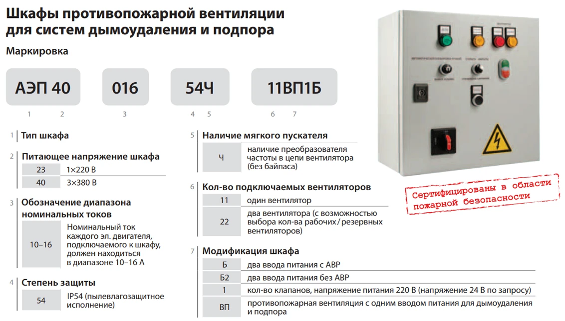 - Назначение: шкаф управления вентилятором противопожарной вентиляции для систем дымоудаления и подпора